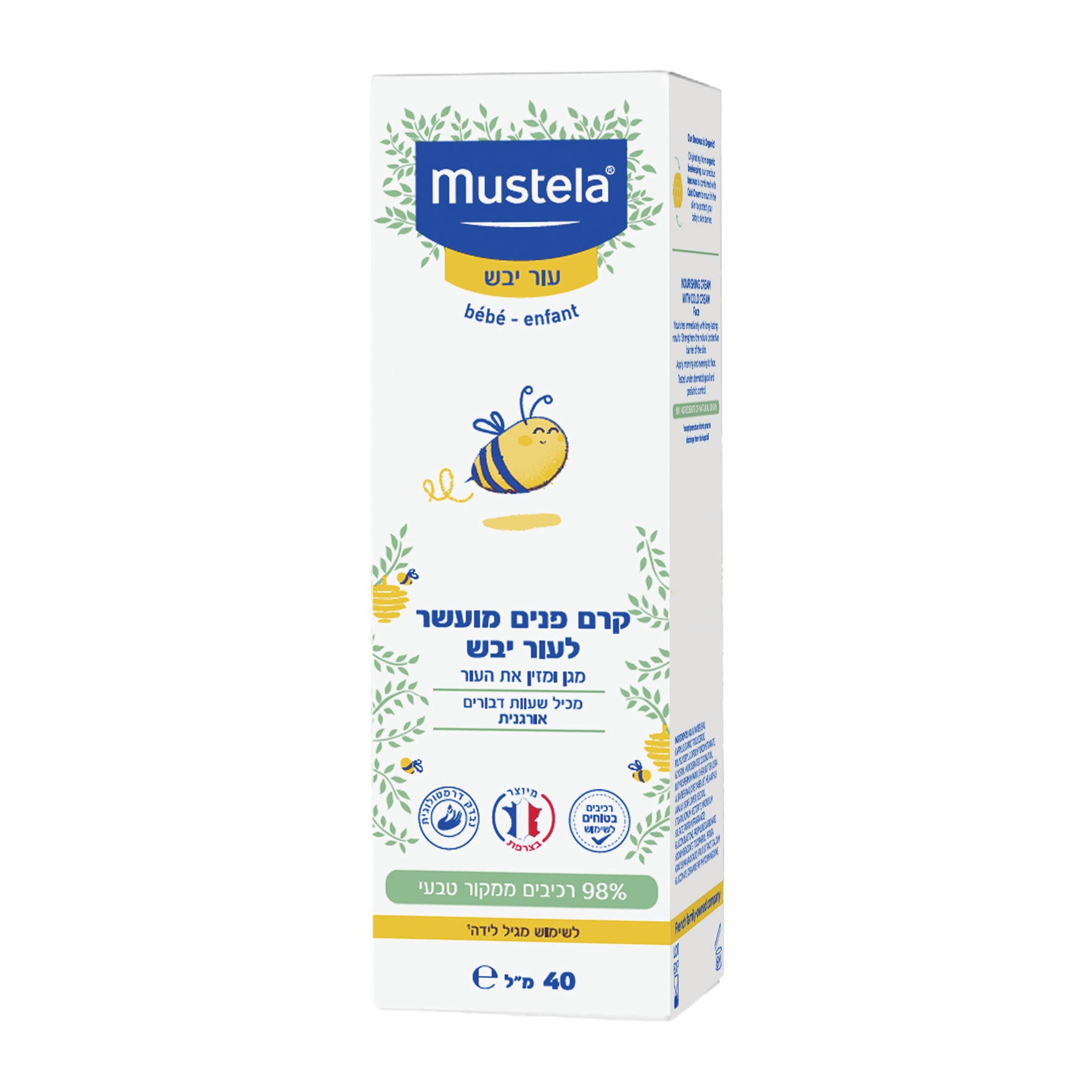 קרם פנים מועשר לעור יבש, לשימוש יומיומי לתינוקות וילדים מגיל לידה (מלבד פגים טרם השחרור מבית החולים). מגן ומזין את העור. מכיל 98% רכיבים ממקור טבעי ושעוות דבורים אורגנית.